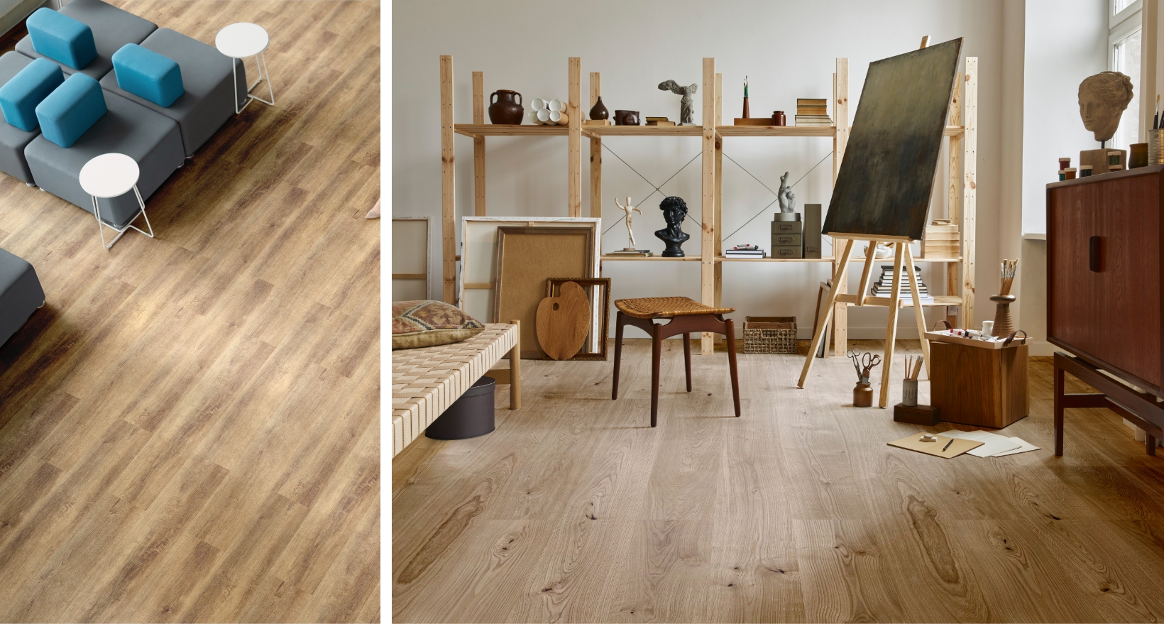 Nicht zuletzt sind sie durch die trockene Verlegung zerstörungsfrei rückbaubar. So ist sogar schwimmend verlegtes Parkett im Industriebereich keine Utopie mehr, lässt sich dünnes Echtholzfurnier im Verbund mit einer mineralischen Trägerplatte mit einer extrem robusten Lackierung sicher und wasserfest im Objektbereich einbauen – günstiger und schneller als fest verklebtes Parkett mit Dickschichtfurnieren.