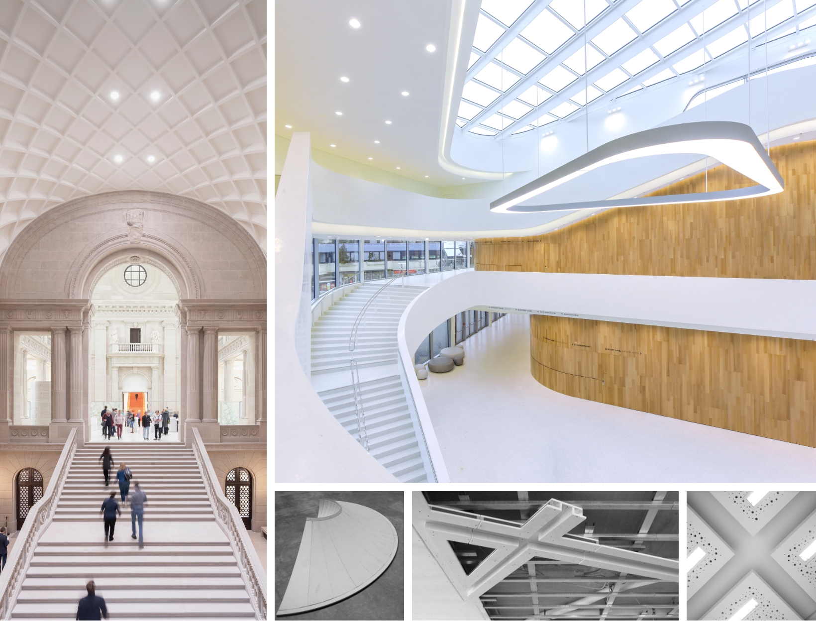 Gips ist unser natürlicher Werkstoff und Basis hochwertiger Deckensysteme – ob glatt oder als Lochplatte, individuell geformt oder gefärbt. An der Decke erwachen Gipsplatten zu neuem Leben, entstehen durch Farbe, Form und Struktur charismatische Oberflächen, die sämtliche Anforderungen an die moderne Innenarchitektur erfüllen.