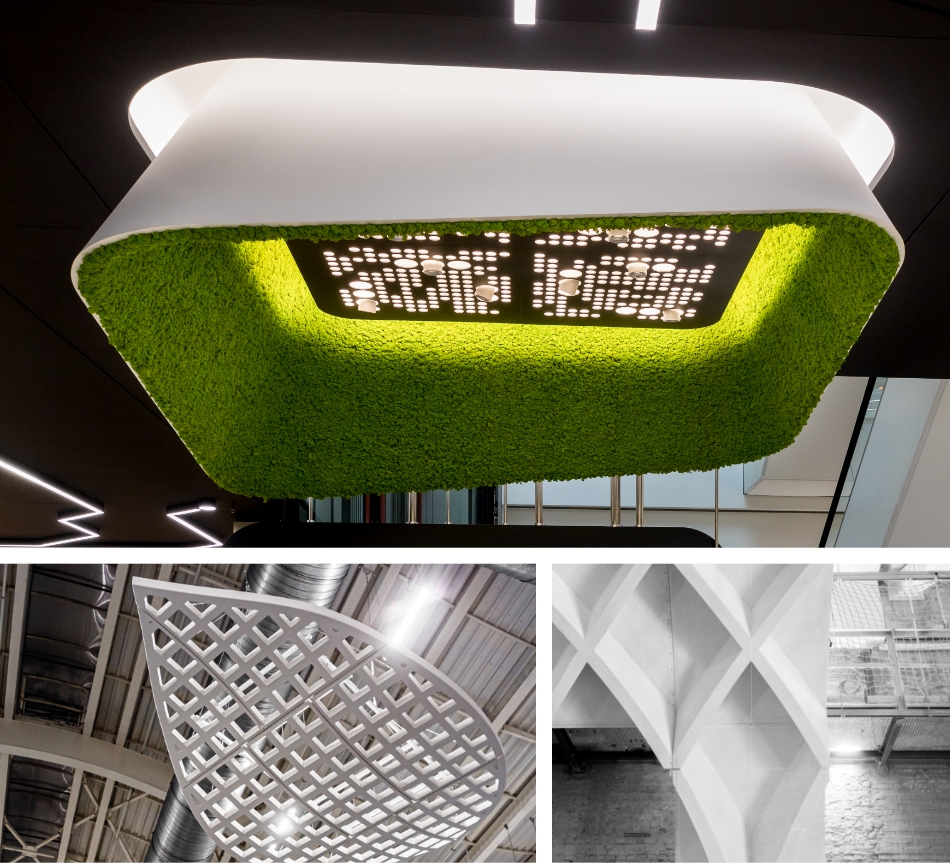 Akustik-, Design-, Licht- und Klimadecken zählen zu unseren Kernkompetenzen – Sonderformteile sind unsere Spezialität. Unsere Produkte sind schadstoffgeprüft, baustoffklassifiziert und perfekt aufeinander abgestimmt. Mit ausgeprägter technischer Kompetenz und unserem eigenen Werkzeugbau ermöglichen wir baubare Komplettlösungen für jede anspruchsvolle Objektdecke und Geometrie.