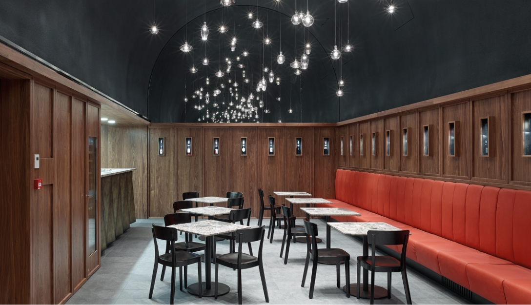 Weil keine noch so gute digitale Visualisierung die originale Holzoberfläche ersetzen kann, stellen wir dem Architekten auch eine großflächige Bemusterung des gefügten Furnierdecks zur Verfügung. muto‘ stellt sicher, dass jedes beauftragte Gewerk eine hochwertige Holzoberfläche mit verteilten natürlichen Holzmerkmalen, wie Ästen, Splint oder Noppen erhält, so dass am Ende ein harmonisches Gesamtbild entsteht. Handwerk von der Vision bis zur Einweihung.